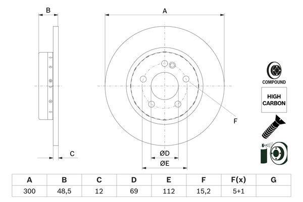FREN DISKI ARKA C-CLASS W205 14- S205 14- - BOSCH 0986479H49