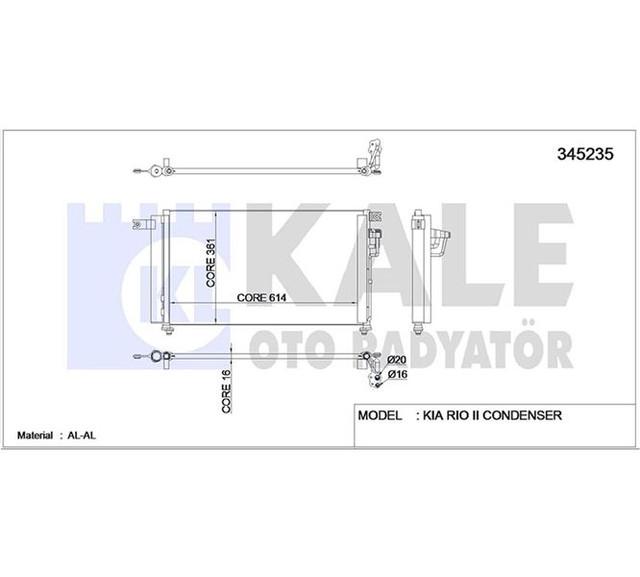 KLIMA RADYATORU KURUTUCU ILE BRAZING 613X361X16 AT/MT KORE RIO 16V BENZIN 2005- 976061G000 - KALE 345235