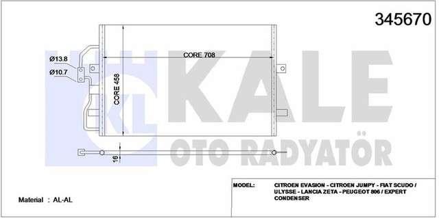 KLIMA RADYATORU KONDENSER KURUTUCULU AL/AL FIAT SCUDO. ULYSSE. CITROEN JUMPY. EVASION. PEUGEOT EXPERT-806 96-.LANCIA ZETA - KALE 345670