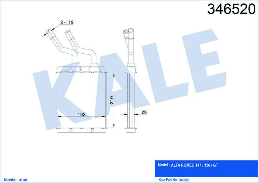 KALORIFER RADYATORU BRAZING FIAT ALFA ROMEO 147-156-GTV BM- 01- 46799655 - KALE 346520