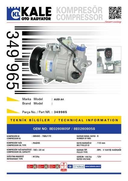 KLIMA KOMPRESORU AUDI A4 [6PK - V KAYIS KASNAGI] [110MM] #### - KALE 349965