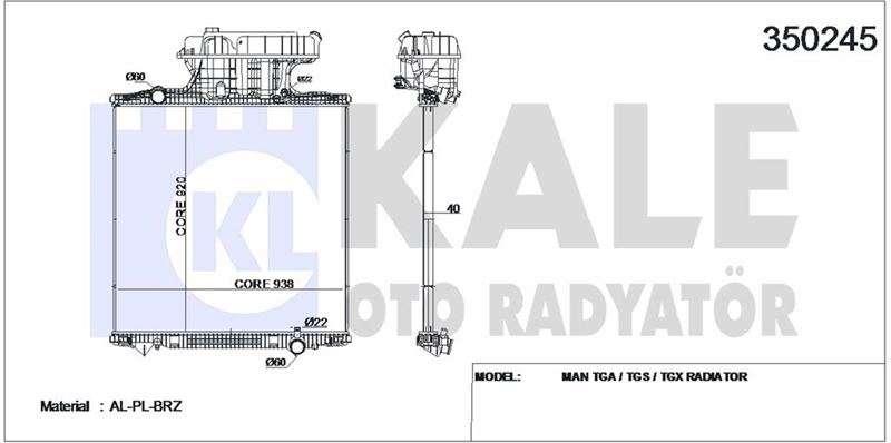 SU RADYATORU CERCEVESIZ MAN TGA/TGS/TGX - KALE 350245