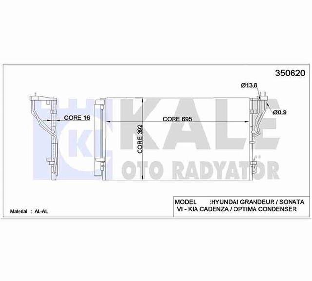 KLIMA RADYATORU KURUTUCU ILE BRAZING 695X392X16 KORE AZERA/SONATA/I45 BENZIN 2009- 976063R000 - KALE 350620