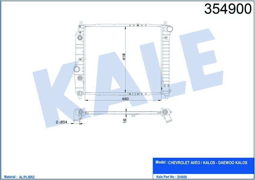 SU RADYATORU AL/PL/BRZ DAEWOO KALOS 1.2 03- 480x418x16 - KALE 354900