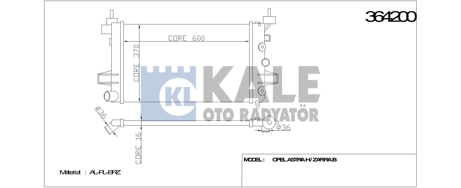 SU RADYATORU AL/PL/BRZ OPEL ASTRA H 1.2 05-10. 1.4-1.8 04-10 600x385x16 - KALE 364200