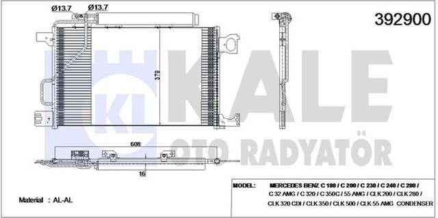 KLIMA RADYATORU KONDENSER KURUTUCULU AL/AL MERCEDES-BENZ C SERISI W203 02-07. T S203 01-07. COUPE CL203 02-08 630x375x16 - KALE 392900