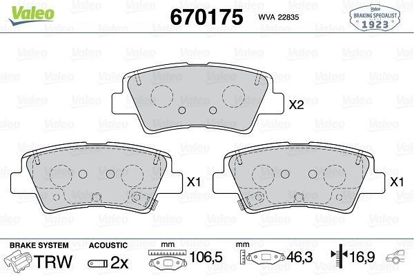 Balata Fren Arka-Opel Astra K/insignia B 2016-Wva 22129 - VALEO 670175