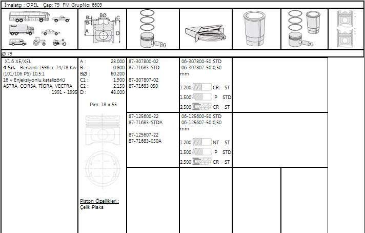 MOTOR PISTON SEGMANI 0.50 ASTRA F ASTRA G VECTRA B VECTRA C ZAFIRA A X1.6XEL Z1.6XE/1.6 16V/79.50MM LAMELLI - GOETZE 61256075G