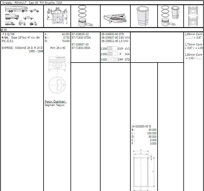 Motor Segman 80,00mm 0,50 Renault Megane R19 Expres Kangoo 1,9d F8q - GOETZE 63365079G