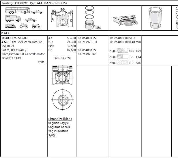 MOTOR SEGMAN 94,80MM 0,40 FARK FIAT DUCATO BOXER II JUMPER II MOVANO DAILY 2,8TD 2,8JTD 2,8HDI OLCU 2,5X2X2,5 - GOETZE 68548060G