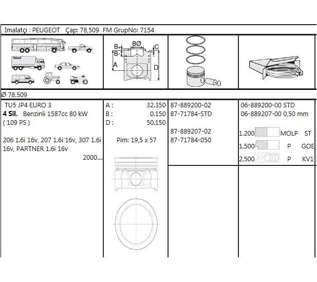 Motor Segmani Partner P307 P206 P207 Berlingo C2 C3 C4 1.6i 16v Tu5jp4 Euro 3 78.50mm/std Olcu 1.21.52.5 - GOETZE 68892000G