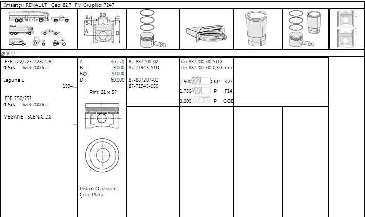 Motor Piston Segman 82.70mm 0.50 Megane.agun.sceni.f3.2..goetz.8771945050000. - GOETZE 8771945050000G