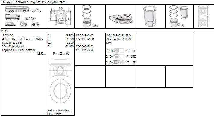 Motor Piston Segman Laguna İ 2.0 16v Safrane N7q 83.00mm - GOETZE 8771963050000G