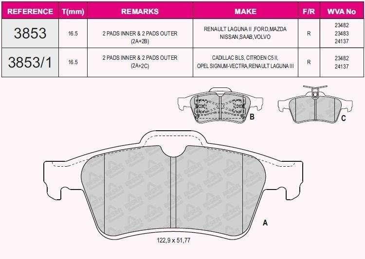FREN BALATASI ARKA LAGUNA 01- LATITUDE 11- VEL SATIS 02- ESPACE 02-/VECTRA C 02-08 02-08 SIGNUM 03-08 03-08/CMAX II 10- FOCUS II CB4 04-11 FOCUS III CB8 11-14 FOCUS IIII CEW 14- C-MAX 06-11 TRANSIT CONNECT TC7 02-13/PRIMERA P12 02-/9-3 02-/USTU SEGMANSIZ - GRAP 93853