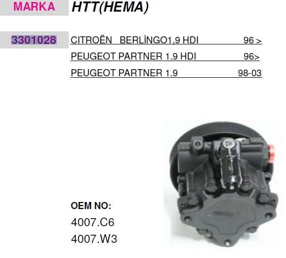 DIREKSIYON POMPASI HIDROLIK CITROEN BERLINGO 1.9. PEUGEOT PARTNER 1.9 98-03 - HATTAT 3301028