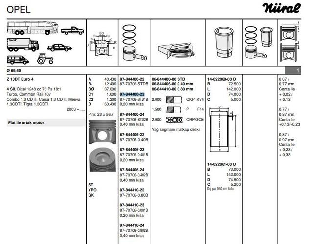 Motor Pistonsegman Std 69.60 Mm Fiat Palio.Albea.Doblo.Opel Corsa C.Combo C 1.3 70 Ps 0.20 Mm Kisa Piston Euro 4 - - ISS 8770706STD10BG
