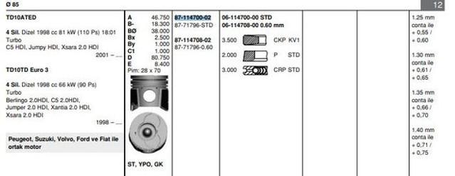 Motor Pistonsegman Std 85 Mm Peugeotpartner.P206.P306 2.0 Hdi Dw10 - - ISS 8771796STD000G