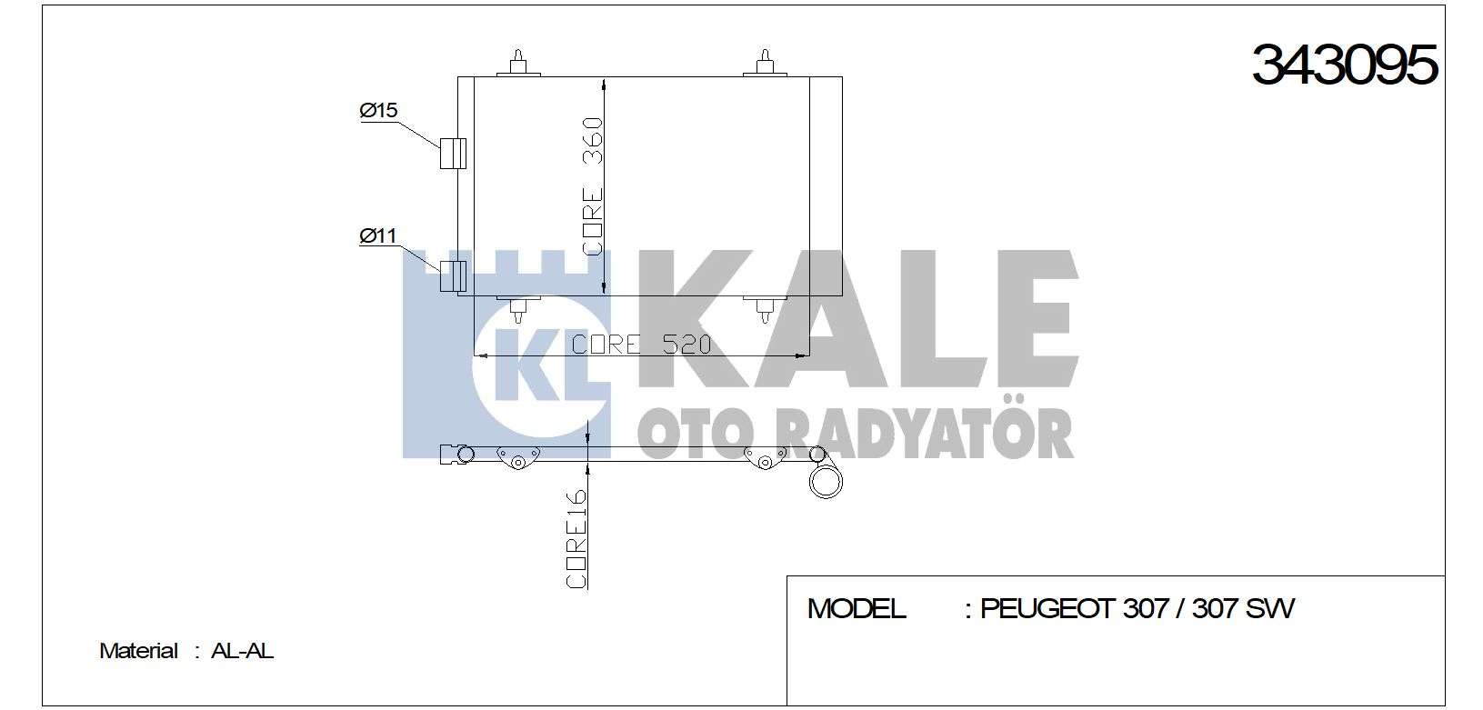 KLIMA RADYATORU KONDENSER KURUTUCULU AL/AL PEUGEOT 307 1.4 00-03. 1.6 HDI 04-09 - KALE 343095