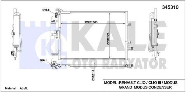 KLIMA RADYATORU KONDENSER KURUTUCULU AL/AL RENAULT CLIO III 1.5 DCI 05-12. MODUS/GRAND MODUS 1.4-1.6 04-. 1.5 DCI 04- - KALE 345310