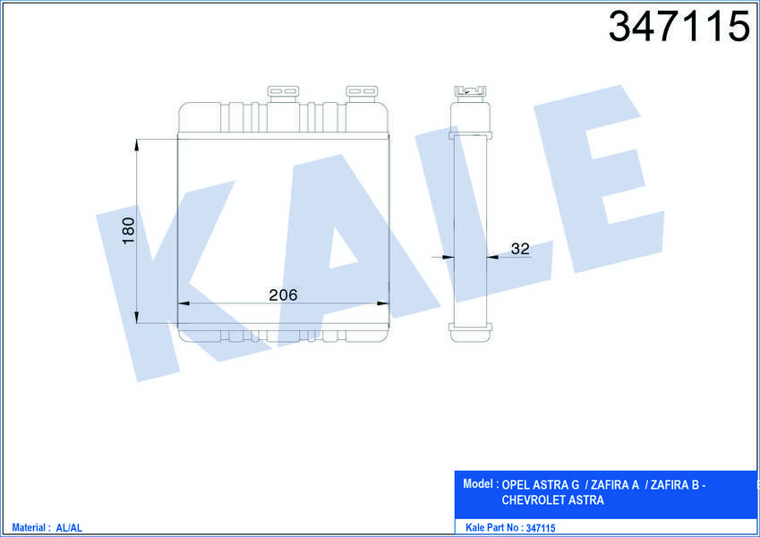KALORIFER RADYATORU OPEL ASTRA G / ZAFIRA A / ZAFIRA B - CHEVROLET ASTRA 812222 AL/BRZ - KALE 347115