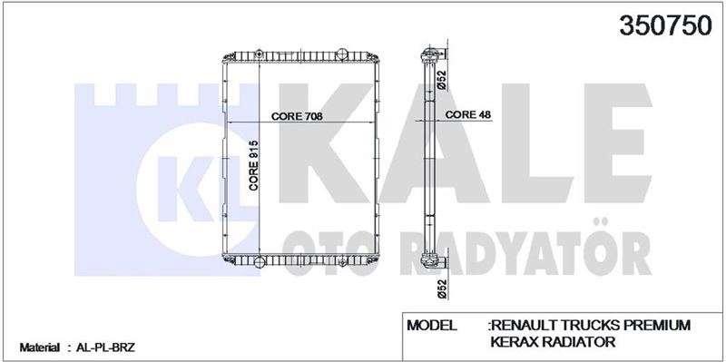 RADYATOR MOTOR RENAULT TRUCKS PREMIUM/KERAX RADYATOR CERCEVESIZ - KALE 350750