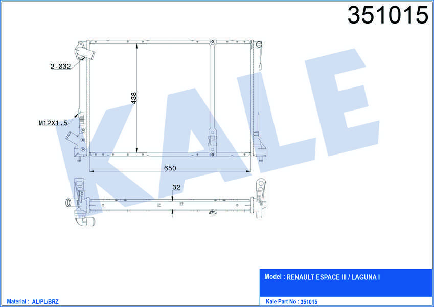 SU RADYATORU AL/PL/BRZ RENAULT ESPACE III. LAG - KALE 351015