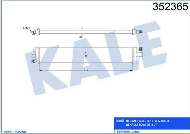 TURBO RADYATORU INTERCOOLER NV400-MOVANO B-MASTER III LT 2.3CDTI 10 ILAVE SOGUTUCU AT-MT - KALE 352365