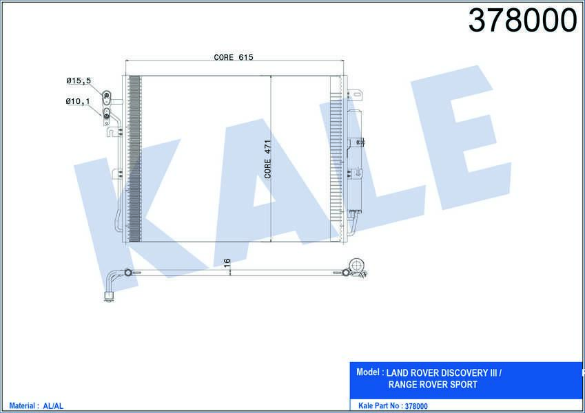 KLIMA RADYATORU KONDENSER LAND ROVER DISCOVERY III 2.7 V6 TDI 04- SPORT 2.7TD 05- AT/MT KURUTUCU ILE BRAZING AL/AL 59547116 - KALE 378000