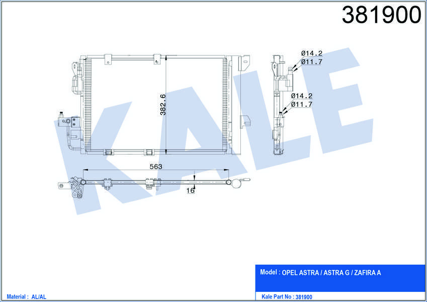 KLIMA RADYATORU KONDENSER OPEL ASTRA G 1.2 16V. 1.4 16V. 1.6 16V. 1.8 16V. ZAFIRA A 2.2 16V573x383x16 - KALE 381900