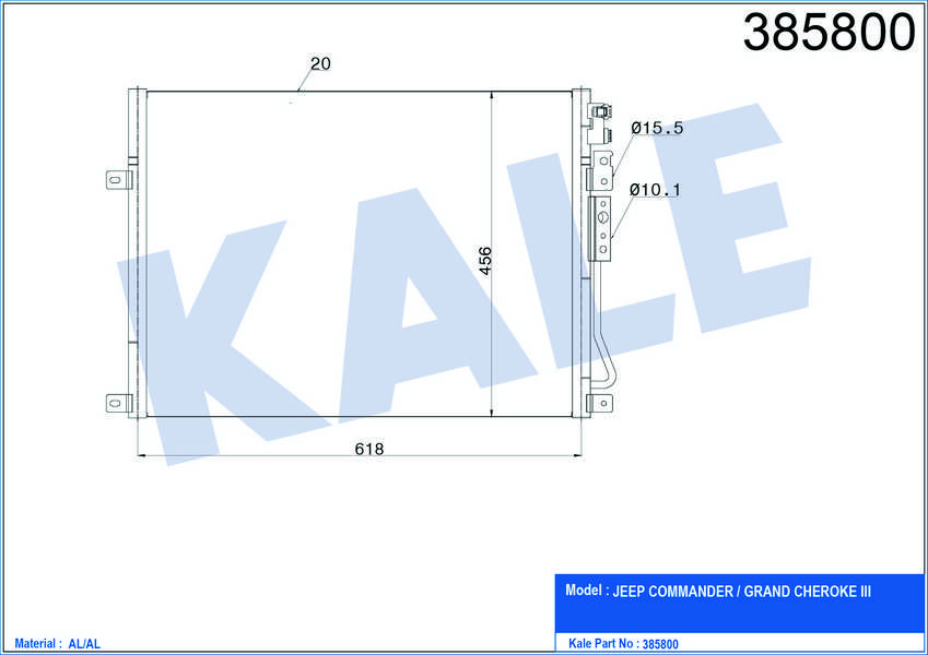 KLIMA RADYATORU KONDENSER KURUTUCULU AL/AL JEEP COMMANDER. GRAND CHEROKE III 3.7 V6. 4.7 V8. 5.7 V8. 3.0 CRD 05-10 - KALE 385800