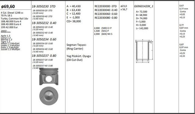 Motor Pistonsegmani Riken 69.600.60mm 0.20 Mm Kisa Cap Agila 1.3 Corsa 1.3 Meriva 1.3 Tigra 1.3 Albea 1.3 Multijet Doblo 1.3 Multijet Palio 1.3 Multijet Suzuki 1.3 Multijet Z 13dt Euro 4 4 Sil.Dizel 1248 Cc-70 Ps 181-turbo.Common Rail Kingpiston 18-305 - KINGPISTON 18-3050234-20