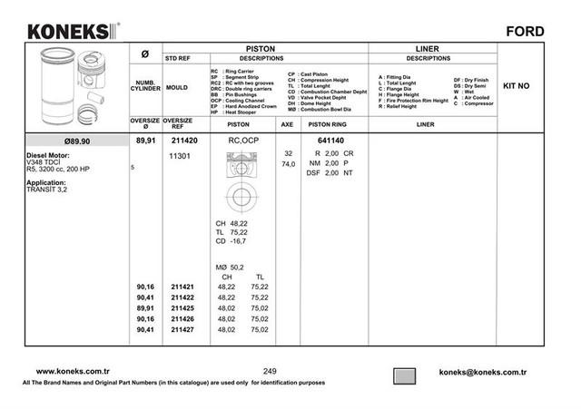 MOTOR PISTON SEGMAN 89.91MM/STD TRANSIT V347 JUMBO 3.2TDCI 5 PISTON 200PS 2006/ - KONEKS 211420